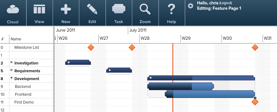 Tom’s Planner is online Gantt chart software that allows project teams to create, collaborate and share Gantt Charts online with drag and drop simplicity. It’s cloud/web based, intuitive and easy-to-use. Quite popular with the project leads!