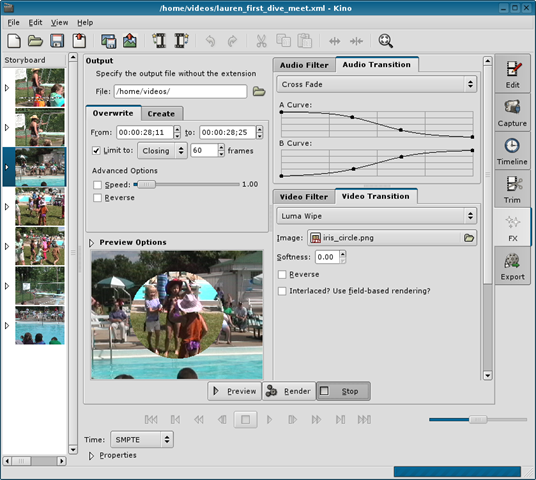 Open Movie Editor is a free and open source video editing program, designed for basic movie making capabilities. It aims do be powerful enough for the amateur movie artist, yet easy to use. It runs on Linux. You can check the complete feature list from the Open Movie Editor site.