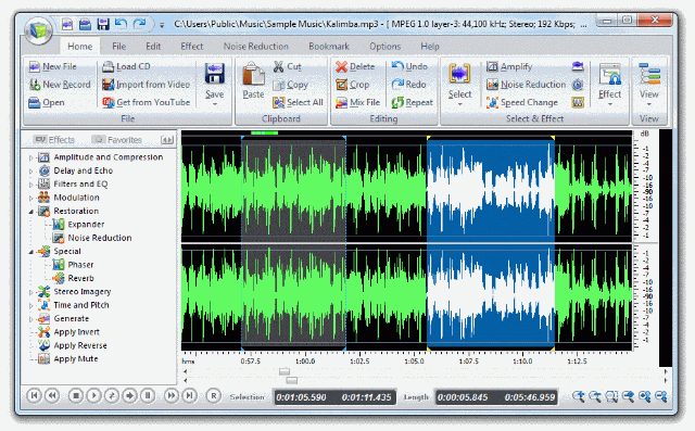 Free Audio Editor lets you to edit audio files visually, record audio from a microphone or any other available input device, apply various effects, burn audio CDs from MP3, WMA, WAV, and OGG. It has a powerful audio recording feature that lets you to edit audio files visually and apply various effects easily.