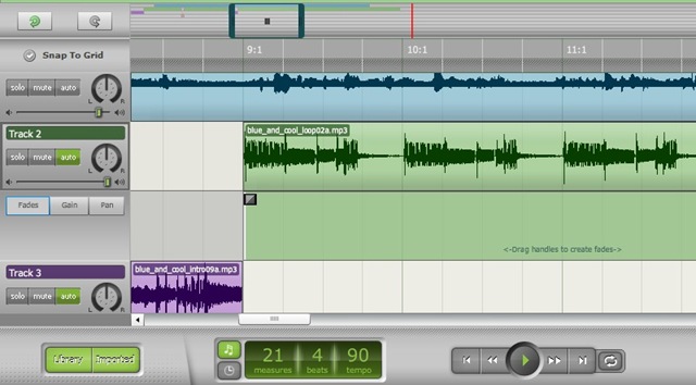 Myna is a free online sound editor. Myna let you to to remix music tracks and audio clips. You can apply sound effects and record your own voice or instruments.