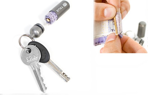 This simple little Cash Stash Keychain ahs been created to store emergency funds. Its simple but smart. To store cash, simply unscrew the capsule, wrap your note(s) around its internal stainless steel CashClip and there is a secret stash of emergency cash. This comes handy when you have forgotten your wallet, or as an emergency when you run out of cash. You can buy the gadget online here.