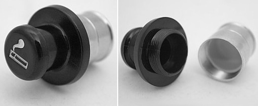 Fake Car Lighter Stash Box Safe. Looks just like a car lighter. Plastic knob unscrews to reveal hidden metal compartment with a plastic liner. You can buy it here.