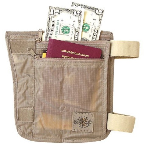 The Eagle Creek Undercover Leg Stash fits comfortably around your thigh with elasticized VELCRO straps. The pouch has two zippered pockets for your passport and funds. The CoolMax backing keeps the Undercover Leg Stash from feeling sweaty or sticky. You can place an online order from here.