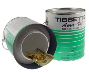 These Paint Can has a quart sized hidden compartment where valuables can be discreetly stored inside. Each is undistinguishable from the genuine product and is even weighted to feel full. You can buy them from here.