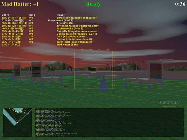 Bzflag is a open source OpenGL multiplayer battle zone capture the flag game. Its a 3D first person tank simulation game.