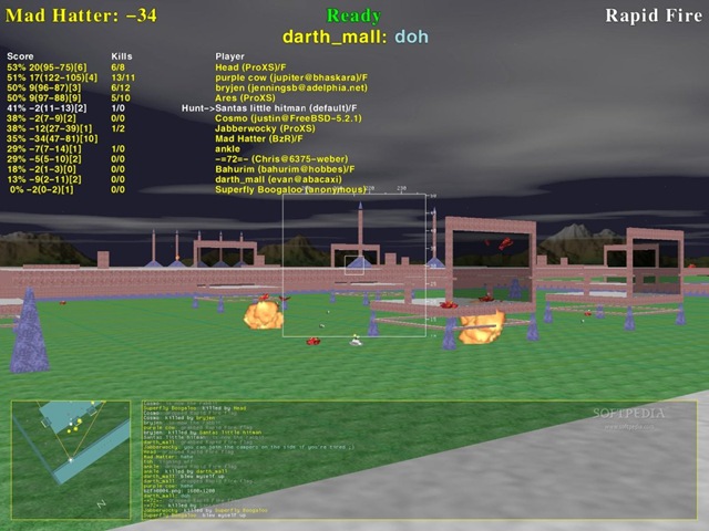OpenArena is a Free Open content package for the id tech3 GPL source code package. OpenArena is a violent, sexy, multiplayer first person shooter based on the ioquake3 fork of the id tech 3 engine. It has many game types beyond deathmatch and a lot of characters. Due to violent and racy content, it may not be suitable for children under 17.