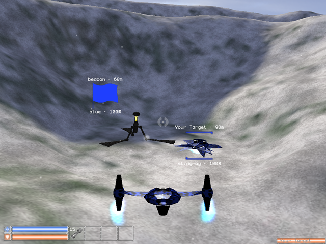The game is set in an imaginary universe where fearless pilots fight to the death with their futuristic vehicles. Gameplay lies somewhere between the Mechwarrior-series and Quake 3. It is faster and more action-orientated than in Mechwarrior, but tries to avoid the ‘jump-around-like-crazy-and-fire-at-everything-that-moves’-gameplay known from Quake 3.
