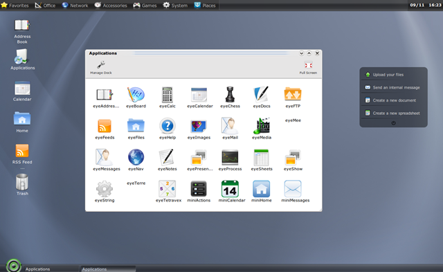 For Public Administrations - With a private server, eyeos can provide city councils, public library networks, free Internet points and other public environments the perfect. You can join here and check the features it provides. It supports IE6/7/8, Firefox2/3, Safari, Opera and Chrome browser.