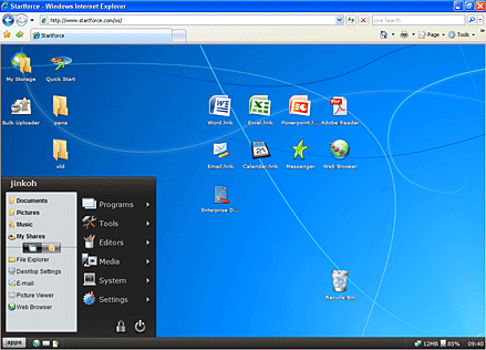 Startforce is the leading provider of Web Desktop services used by businesses of all sizes around the world. With Startforce, you can run Windows apps such as MS Office, Adobe Acrobat and Quickbooks. You can also stitch in web apps such as Salesforce.com, Google or your company’s intranet web apps. It also has developed a handful of Startforce native apps such as Email and Calendar. The combination of Windows Apps, Web Apps, and Startforce Apps makes Startforce Web Desktop the most comprehensive and functional virtual desktop solution on the market. Complete features available here.