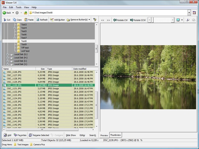 FastStone is an image Viewer, browser, converter and editor. It has a nice set of features that include image viewing, management, comparison, red-eye removal, emailing, resizing, cropping and color adjustments and more.