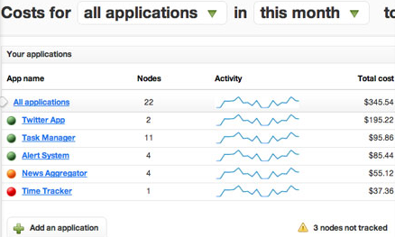- View your costs by application in real-time. (It captures historical data as well as highlights big spenders)