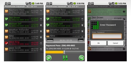 Fusion Voicemail Plus by PhoneFusion is a FREE service that lists ALL of your voicemail messages on your SmartPhone screen. Not only does it list your messages from your mobile phone, but from your home, office and any other voicemail box as well. A tap of a screen or a push of a button is all that’s needed to scroll, listen to, call back, and delete voicemails in the order of your choice. Save time listening to the voicemails that you want, in the order you prefer. Fusion Voicemail Plus is available Android ( also available for handsets running Windows Mobile 5 and 6 and BlackBerry)