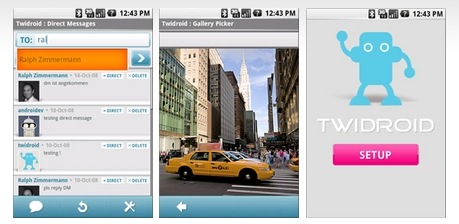 Twidroid is the first full-featured twitter client application on the android platform with features like native photo posting, location support, auto-completion, a fully integrated notification system and the latest news from twitter buzz.