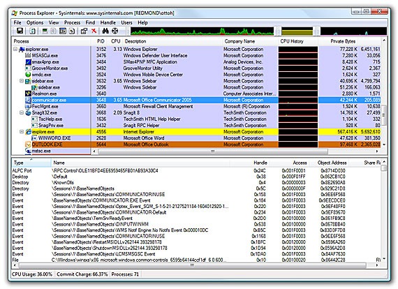 Step 2: Unzip the archive and run ProcExp.exe and you will see something like below; color coded process list.