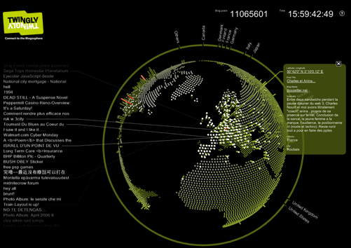 Twingly Screensaver is an insanely amazing screen saver that shows a real time update on global blog activity. That is 24/7 real time blogosphere update on a screensaver! Twingly screen saver is interactive, a rotating globe shows the actual location from where the blog posting is being done. You can interactively select the interesting blog and click on the relevant hyperlink to view the blog.