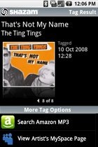 With Shazam you can identify music tracks, store them, and buy them; plus you can learn more about the artist and connect to their MySpace page.