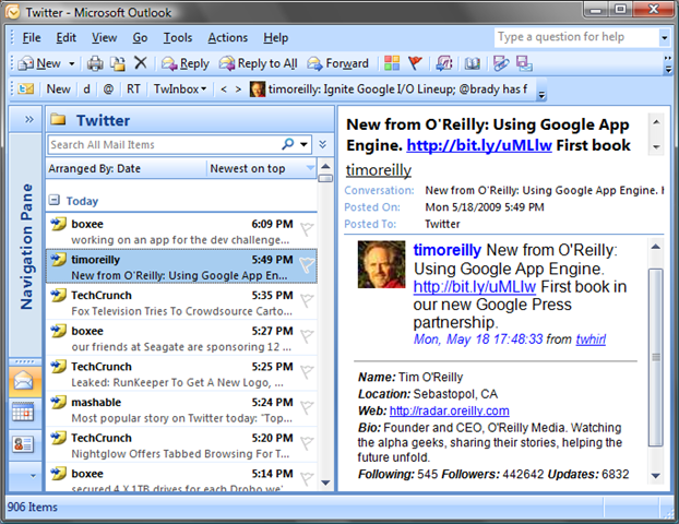TwInBox is a perfect Twitter client for Outlook, whether you are a twitter newbie or an advanced user. It supports a lot of features to quench your Twitter thirst
